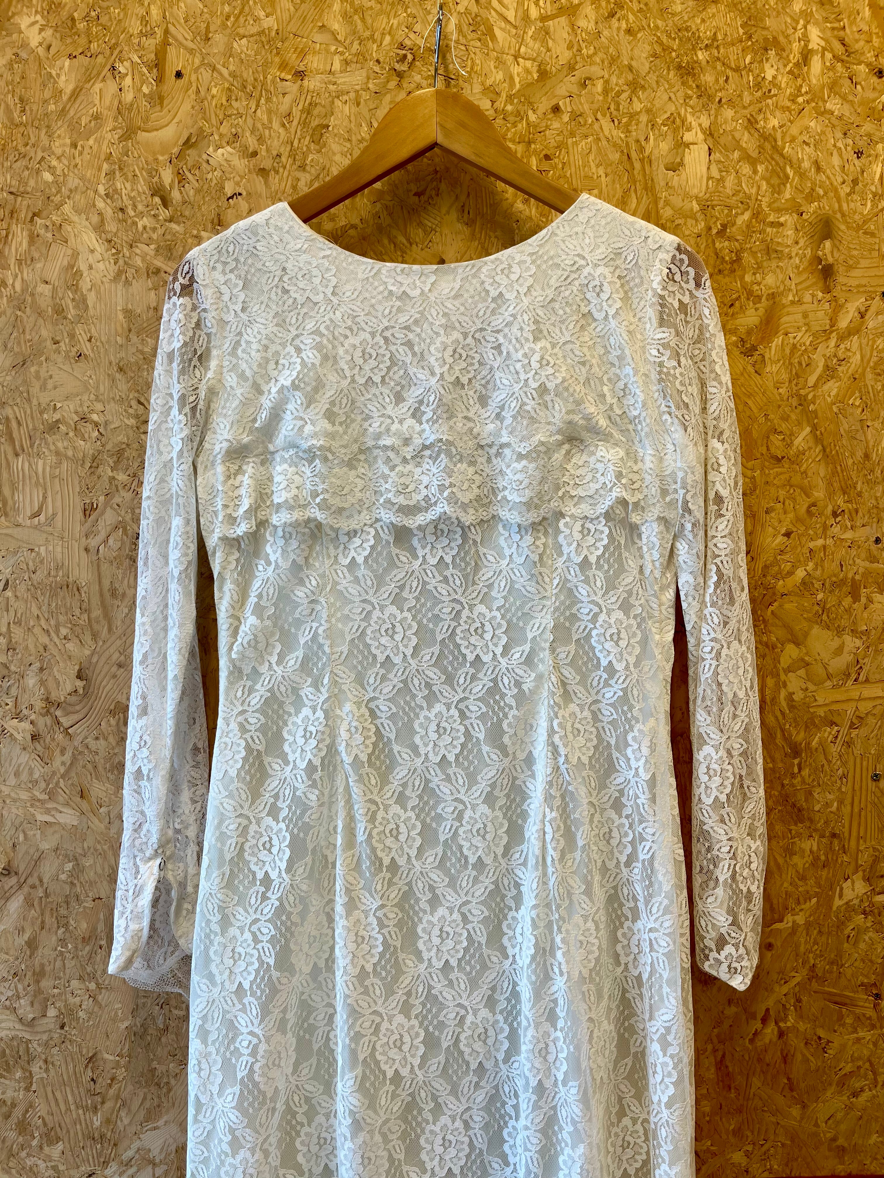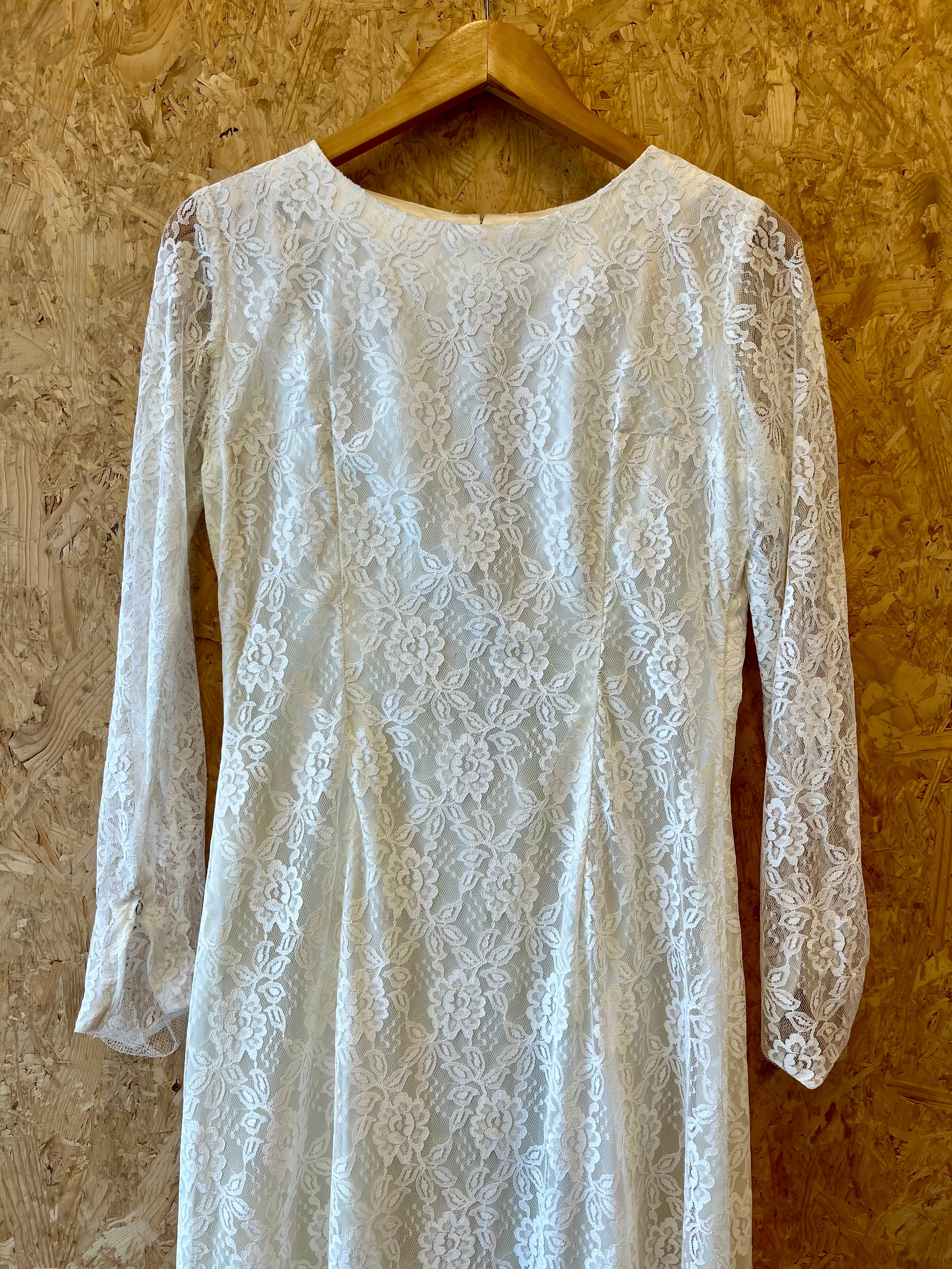 Små endringar på kjolen fra 70- talet: Opna ryggen og tok vekk blonder i front