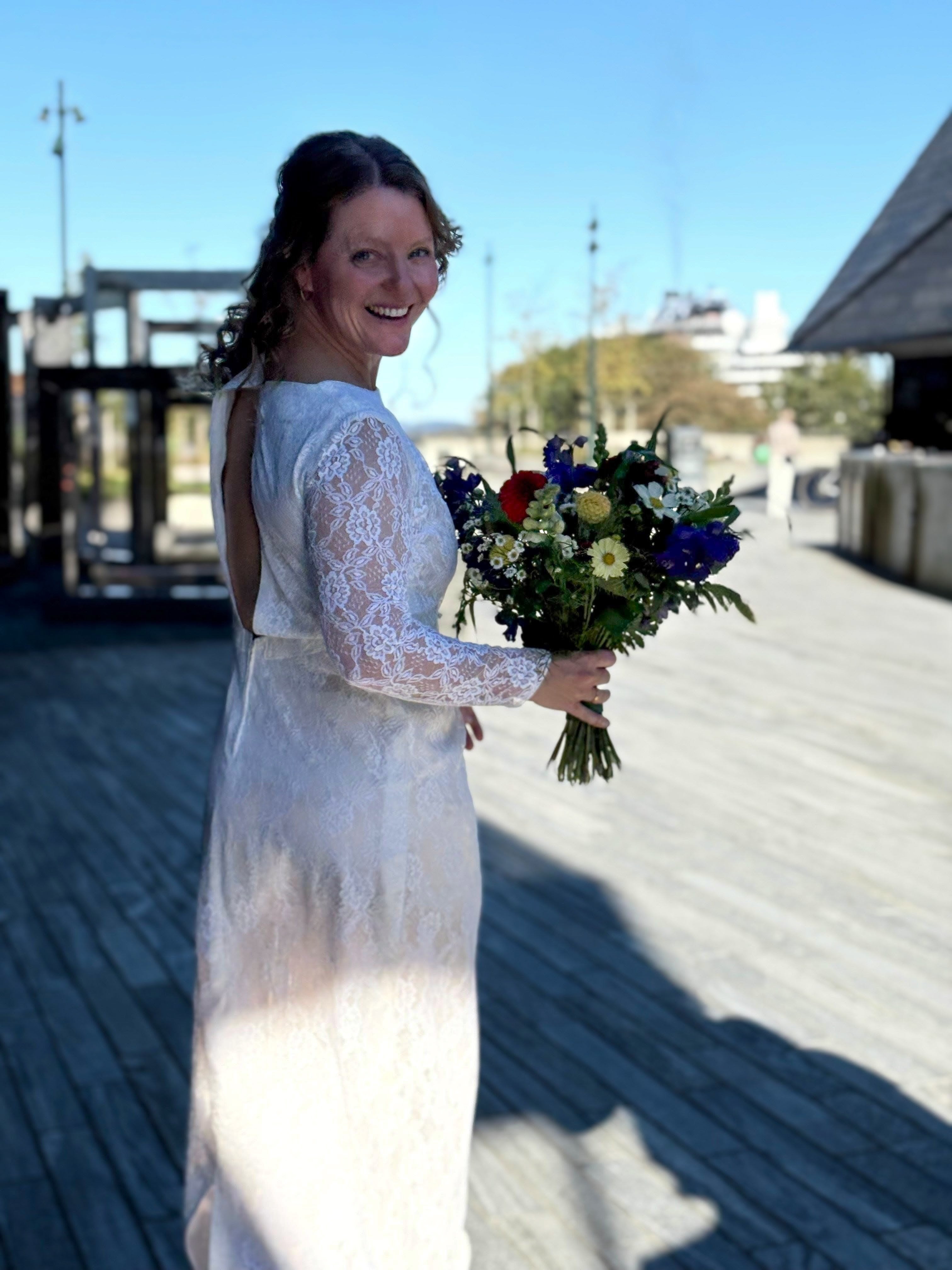 Susanne var stolt brud i mammaen sin brudekjole som opprinneleg var for liten og søt.